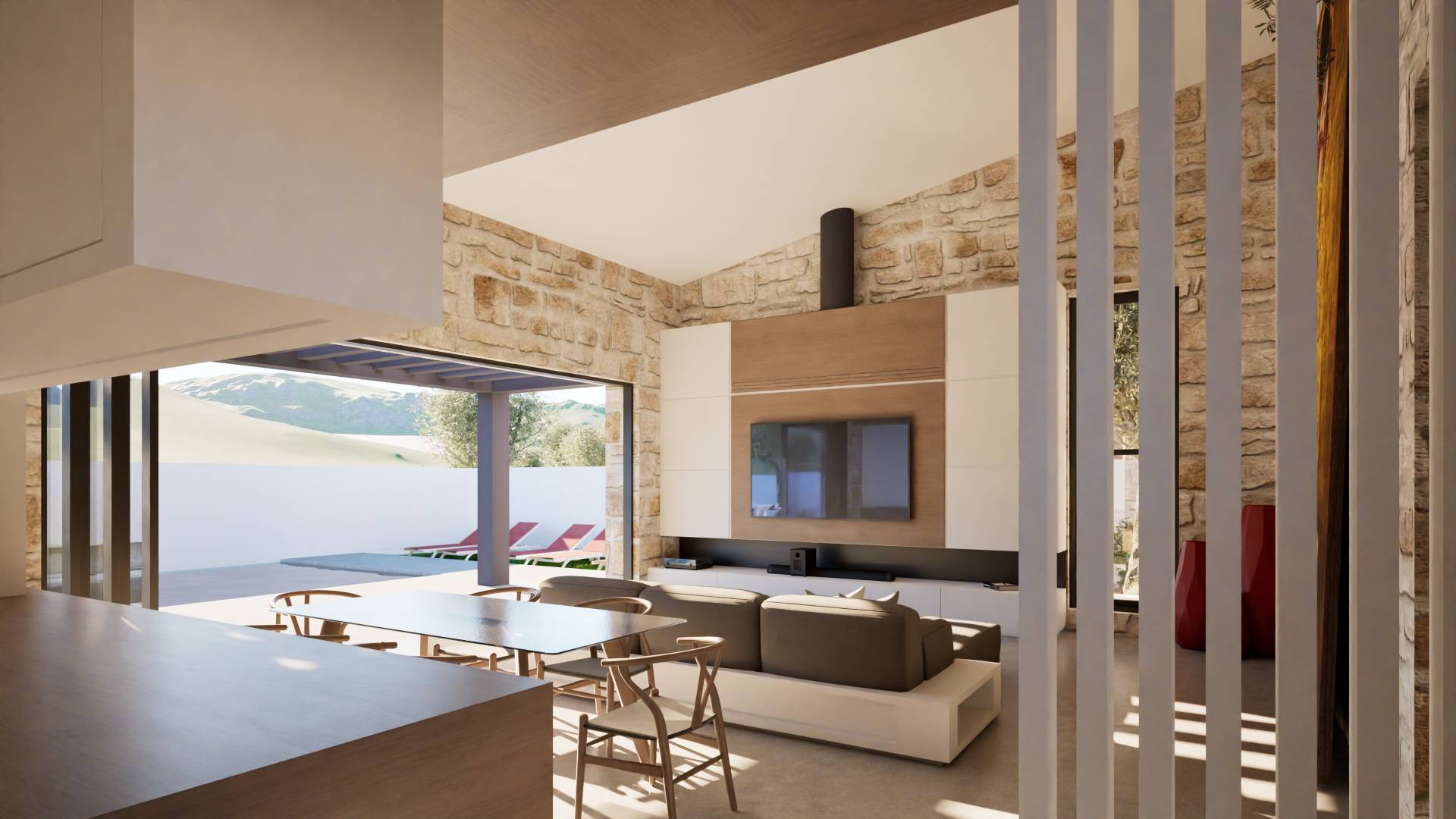 Το έργο Βαλοπούλα ολοκληρώνεται εντός του 2026 και περιλαμβάνει τρεις ανεξάρτητες μονοκατοικίες με έμφαση στην άνεση και την ιδιωτικότητα. Η χρήση πέτρας, οι μεγάλες αυλές και οι ιδιωτικές πισίνες δημιουργούν κατοικίες υψηλής ποιότητας, που αποτυπώνουν τη φιλοσοφία της ERGODOMEIN στη σύγχρονη κατοικία.
